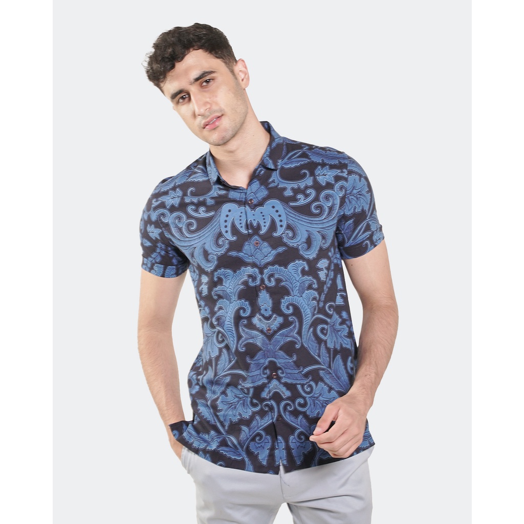 Name: Manzone Kemeja Batik Pria Lengan Pendek Slim Fit Birawa 2-best Buy-blue