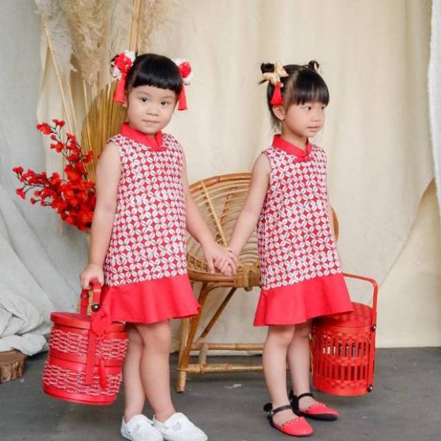 Banting Harga Fashion Bayi & di Kabupaten Lampung Timur Pop Kidswear - Ai Cheongsam Batik Dress - Dress Anak Perempuan Imlek Cny Sinciah dari POP Kidswear Kota Bandung
